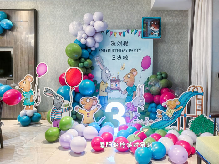 专为热爱自然森林气息的虎宝宝准备的生日派对主题,给人温馨、惬意、清爽、生机、活力感的虎宝宝主题生日场景布置。自然气息浓厚,让人有置身于森林之中与万兽之王的小老虎作伴玩耍的感觉。太阳当空照,森林枝叶茂,长颈鹿安逸的在树上找叶子吃,几只虎宝宝惬意的躺在森林里,有的眯眯眼,有的伸伸懒腰,享受自然的气息。